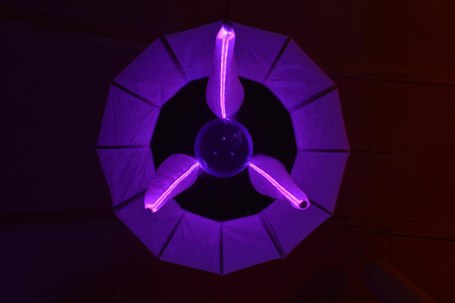 Η Space Jelly αναλύει τον ήχο της μουσικής που ακούγεται στο περιβάλλον της και, βάσει ρυθμού και ηχοχρώματος, δημιουργεί αντίστοιχα γραφικά που προβάλλονται πάνω της (μέσω projector) ενώ τα πλοκάμια της φωτίζονται «παλλόμενα» σε συγχρονισμό με τη μουσική.
